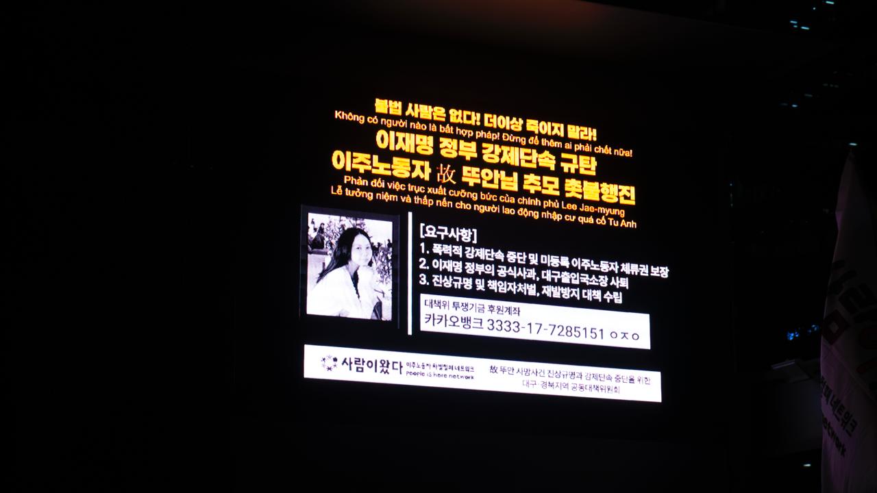 “이 땅에서 가난하다는 이유로, 외국인이라는 이유로 일하다 죽는 사람이 다시는 없길 바랍니다. 제 딸은 더 나아지려는 꿈을 가지고 한국에 왔습니다. 죽으러 온 것이 아닙니다.” 뚜안님 부모님의 눈물젖은 호소입니다.