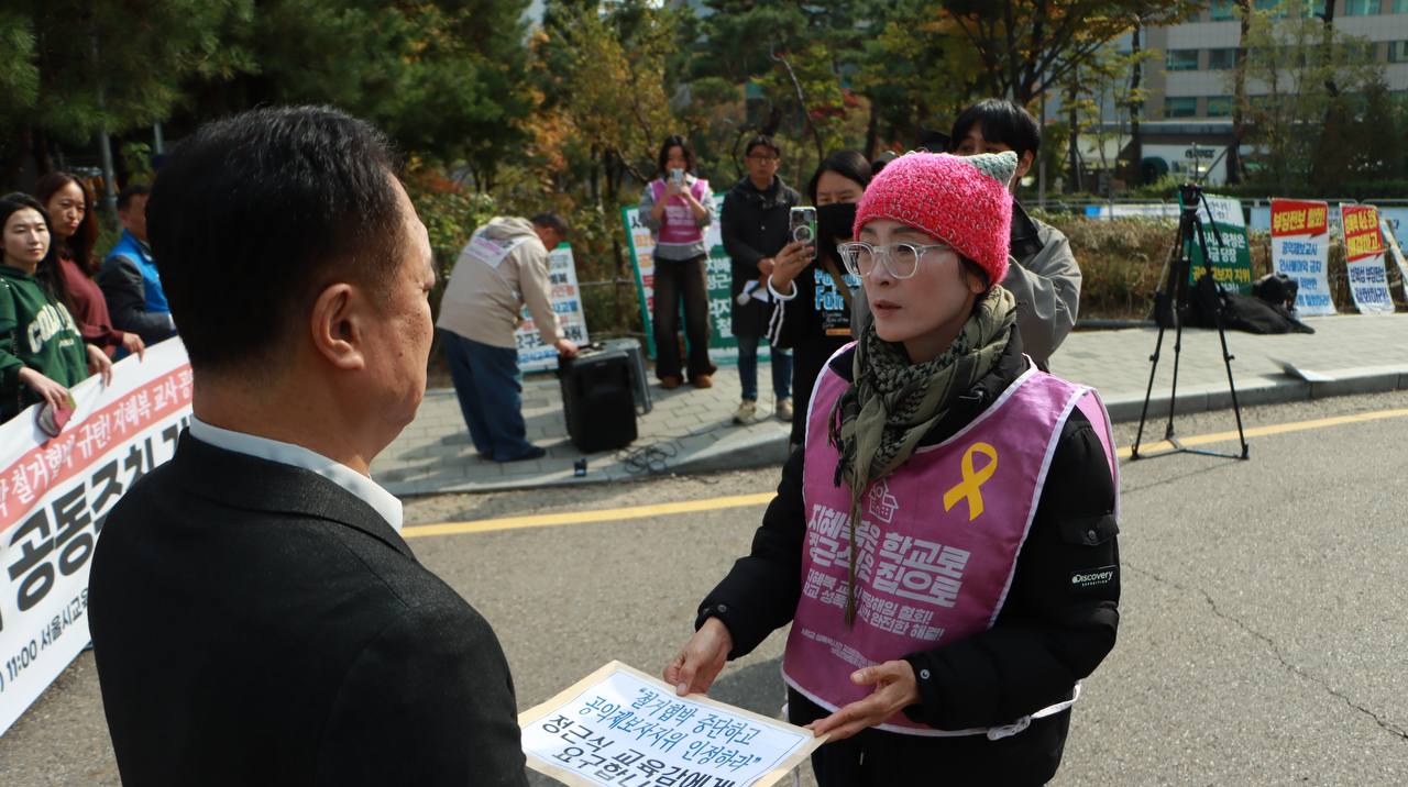 서울시교육청이 지혜복 교사의 공익제보자 인정, 부당전보·부당해임 철회 및 형사고발 취하를 하기는커녕 농성장에 대해 철거 계고장을 보냈습니다.