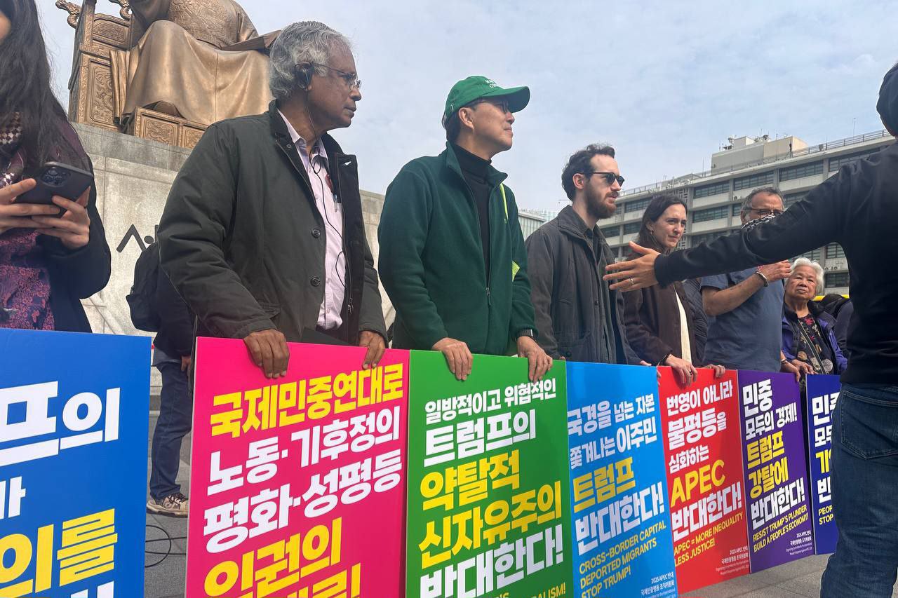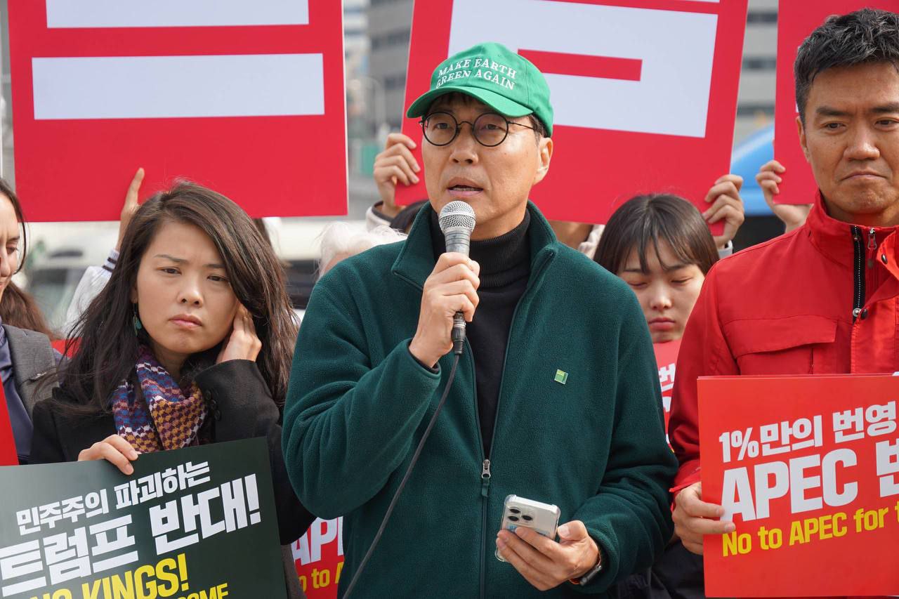 ‘2025 APEC 반대, 트럼프 반대 - 트럼프 방한 결과보고 및 규탄 기자회견과 공동행동’이 서울 광화문 광장에서 있었습니다. 녹색당 김찬휘 공동대표가 참석했습니다.