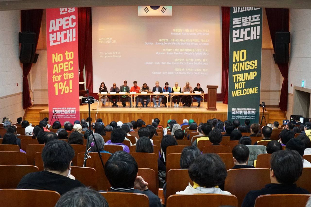 APEC 회의에서 노동자, 농민, 여성, 성소수자, 장애인, 이주민, 기후약자, 전쟁난민 등 세계 민중의 존엄과 생존의 절박한 문제를 해결하기 위한 자리는 찾아볼 수 없습니다.