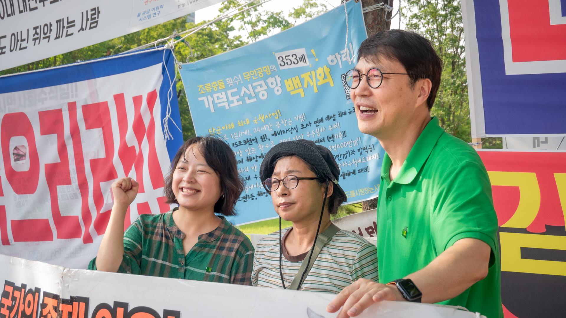 상현, 김찬휘 녹색당 신임 공동대표의 취임일이었던 8월 18일, 두 대표는 첫 일정으로 용산 대통령실 앞 ‘가덕도 신공항 반대 농성장’을 찾았습니다. 생태계 파괴와 기후 붕괴로 인한 생존의 위기를 겪고 있는 지금, 천혜의 자연을 파괴하고 경제성도 없는 신공항을 짓겠다는 계획은 기후 범죄입니다. 갯벌을 매립하고, 산을 깎고, 바다를 메우고, 농지를 덮고, 숨골을 막고, 숲을 도려내는 신공항 추진을 막아내기 위해 녹색당은 언제나처럼 최전선에서 싸우겠습니다.
