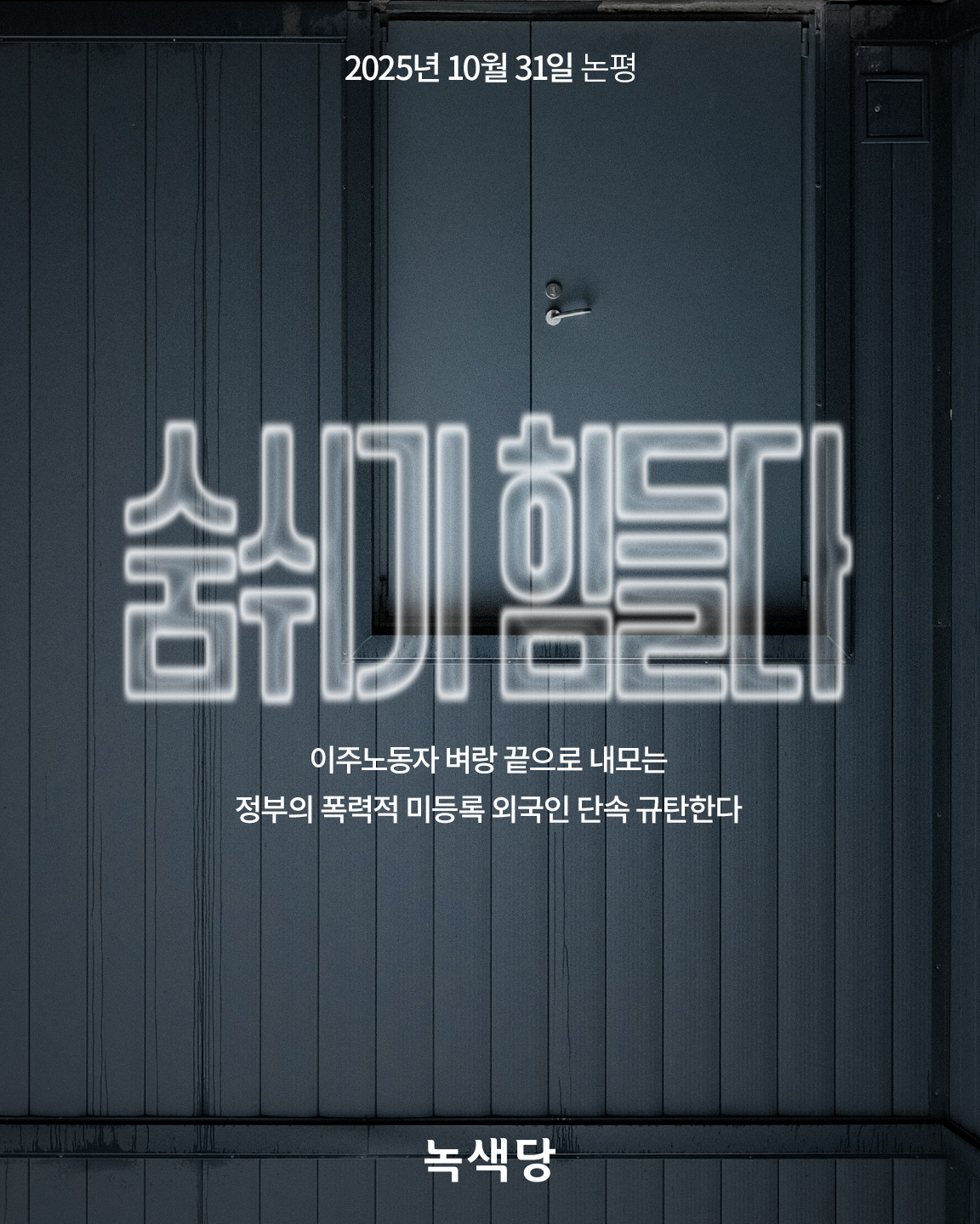 지난 9월, 미국 조지아의 한 건설 현장에서 300여 명의 한국인이 단속되었을 때, 한국 사회는 미국 이민당국의 폭력적이고 반인권적인 행태에 분노했다. 그런 단속이 양국 경제에 끼치는 부정적인 영향을 주장하는 이들도 있었다. 이재명 대통령도 나서 미국 의원들을 만나 비자 제도 개선을 포함한 재발방지책을 요구하는 등 적극적으로 대응했다. 하지만 반인권적 이주민 단속에 대한 분노는 거기서 멈췄다. 국적과 인종이 다르고, 이른바 개발도상국 출신은 그런 대우를 받아도 되는양 한국 사회는 이주노동자 “불법” 낙인찍기와 폭력적 단속 행태는 방관하거나 동조했다.